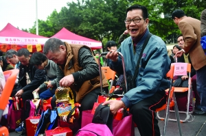 海珠区滨江街的冯叔喜获春节大礼包。信息时报记者叶伟报摄